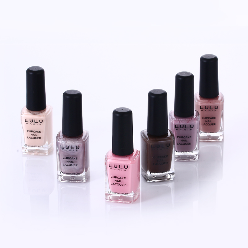 Cupcake Nail Lacquer Matte black colored lid with square bottle,Muti color options,muti finish options as solid,matte,pearlized,glitter,shimmer,transparent ect.FDA and EU approved ingredients and pigments.N.W is 11ml. Previous:5 wells Eye shadow Palette Next:Water based Eye shadow [Return]